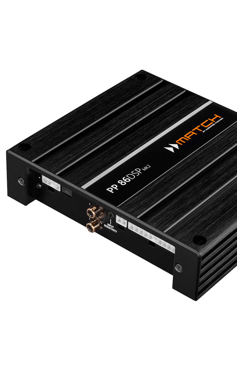 Con la línea PP de MATCH, la idea del verdadero plug & play se agota al máximo. Su coche permanece sin cambios y los componentes plug & play se combinan con la radio de fábrica y los altavoces originales. Gracias a nuestra innovadora tecnología DSP y la potencia adicional del amplificador es posible sacar el máximo partido al equipo de fábrica.